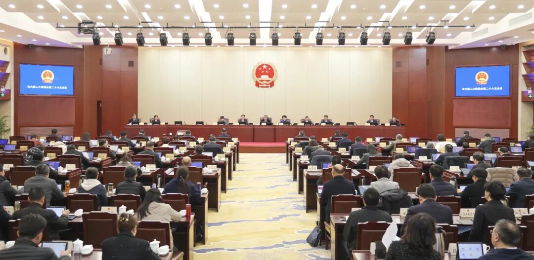 12月30日,市六届人大常委会举行第二十六次会议。受市人大常委会主任张余松委托,市人大常委会副主任孔德平主持会议。市人大常委会副主任邹祥凤、沈明刚、钱忠、李新美,秘书长李卫国出席会议。市委常委、常务副市长秦猛,副市长孙群,市中级人民法院院长杨昌顺、市人民检察院检察长周合星和市监委相关负责同志列席会议。 上午,会议听取市政府关于市六届人大四次会议以来代表建议办理情况的报告及市人大常委会代表工委的调查报告,听取市政府关于泰州市国民经济和社会发展第十五个五年规划纲要草案的说明、市政府关于2025年国民经济和社会发展计划执行情况与2026年国民经济和社会发展计划草案的报告、市政府关于2025年预算预计执行情况和2026年预算草案的报告及市人大财经委的初审报告,听取市政府关于2025年市级预算调整方案和市区地方政府债务限额分配方案的报告及市人大财经委审查结果的报告,听取市政府关于2025年市政府民生实事项目实施情况的报告及市人大常委会评议工作组的综合评议报告,听取市政府关于乡村振兴促进工作情况的报告。听取市人大常委会法工委关于规范性文件备案审查工作情况的报告,听取市人大法制委关于《泰州市知识产权促进和保护条例(草案)》审议结果的报告,听取关于《泰州市人民代表大会常务委员会关于召开泰州市第六届人民代表大会第五次会议的决定(草案)》的说明、关于市人大常委会工作报告稿的说明、关于召开市六届人大五次会议有关事项的说明。听取关于人事任免案的说明,听取被提请任命人员的拟任职发言。下午,会议分组审议了相关报告和事项。 会议公布了2025年市政府民生实事项目实施情况的满意度测评结果,表决通过《泰州市人民代表大会常务委员会关于批准2025年市级预算调整方案和市区地方政府债务限额分配方案的决议》,通过《泰州市知识产权促进和保护条例》。会议表决通过《泰州市人民代表大会常务委员会关于召开泰州市第六届人民代表大会第五次会议的决定》,通过市人大常委会工作报告稿,通过市六届人大五次会议列席人员范围。会议表决通过相关人事任免事项,向被任命人员颁发任命书,被任命人员向宪法宣誓。