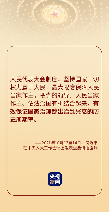 2021年10月13日至14日,中央人大工作会议在北京召开。习近平总书记出席会议并发表重要讲话。 符合我国国情和实际、体现社会主义国家性质、保证人民当家作主、保障实现中华民族伟大复兴的好制度是什么? 我们党领导人民在人类政治制度史上的伟大创造是什么? 在我国政治发展史乃至世界政治发展史上具有重大意义的全新政治制度是什么? 2021年10月13日至14日,中央人大工作会议在北京召开,习近平总书记出席会议并发表重要讲话。从总书记的讲话中我们不难发现,这三个问题指向了同一个答案——人民代表大会制度。 制度稳则国家稳,制度强则国家强。60多年来特别是改革开放40多年来,人民代表大会制度为党领导人民创造经济快速发展奇迹和社会长期稳定奇迹提供了重要制度保障。